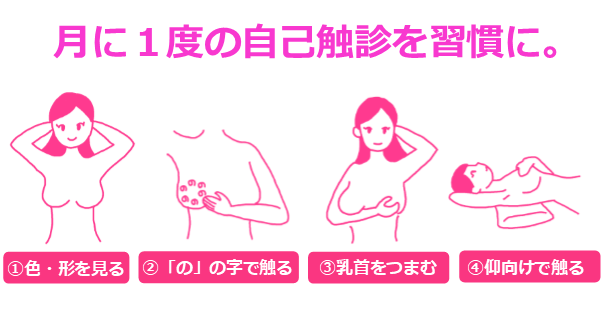 毎月1回、日にちを決めて、または生理周期に合わせて、乳房の自己触診を習慣に!
