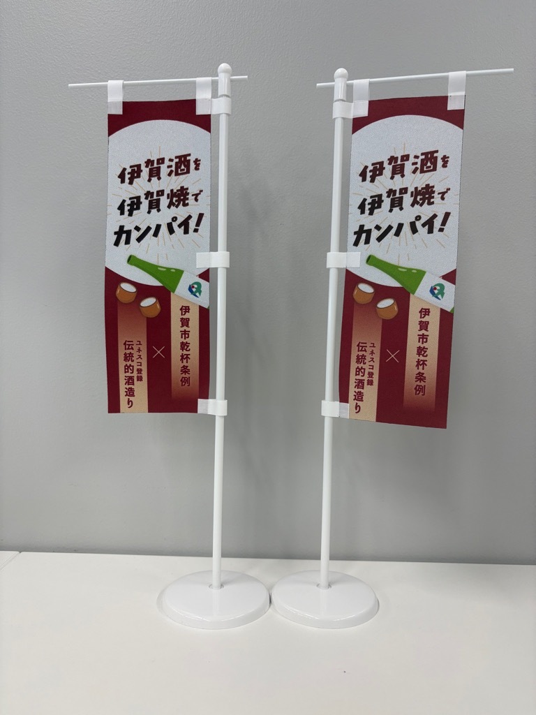 市では、乾杯条例の普及を図るため啓発用物品として「ミニのぼり」を作成しました。