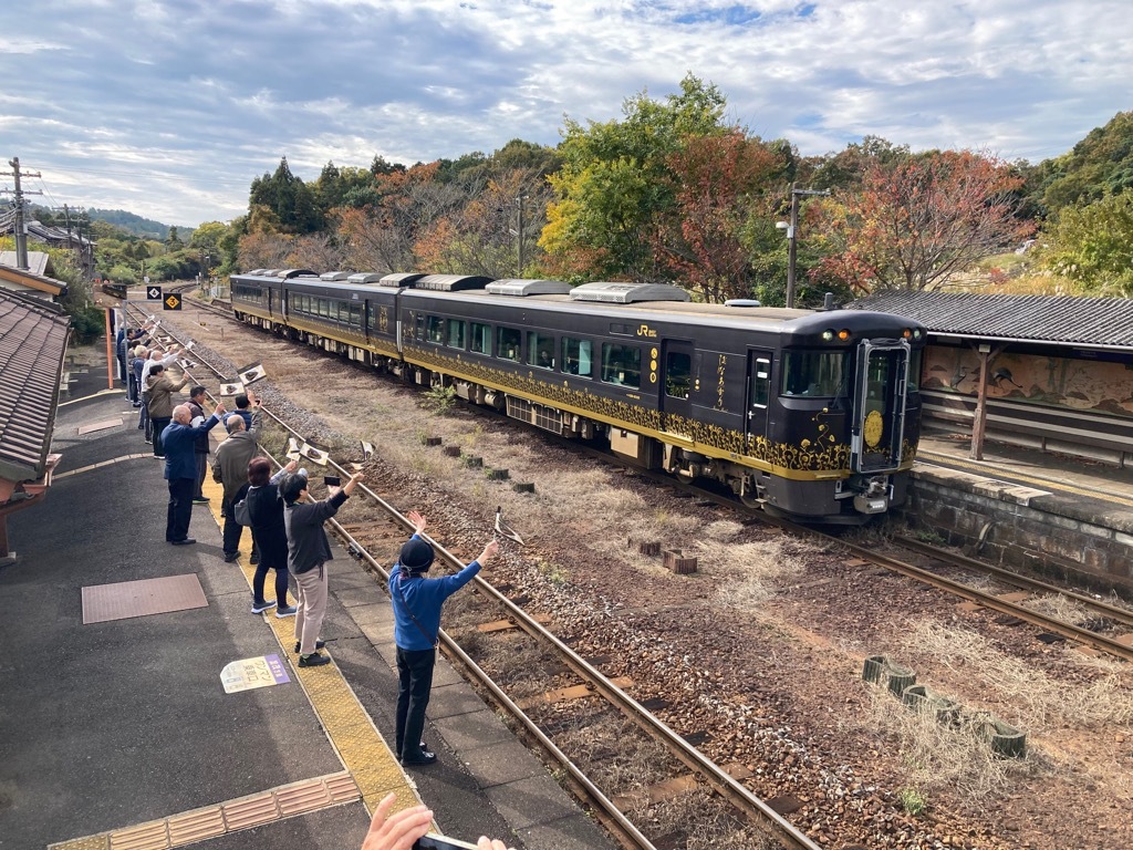 関西方面からの誘客・利用促進による沿線活性化の取組の一つとして、「地域の華を列車に集め、お客様と地域の縁を結ぶ列車」がコンセプトである観光列車「はなあかり」の実証運行を令和7年11月12日(水)、26日(水)、12月3日(水)の3日間行いました。