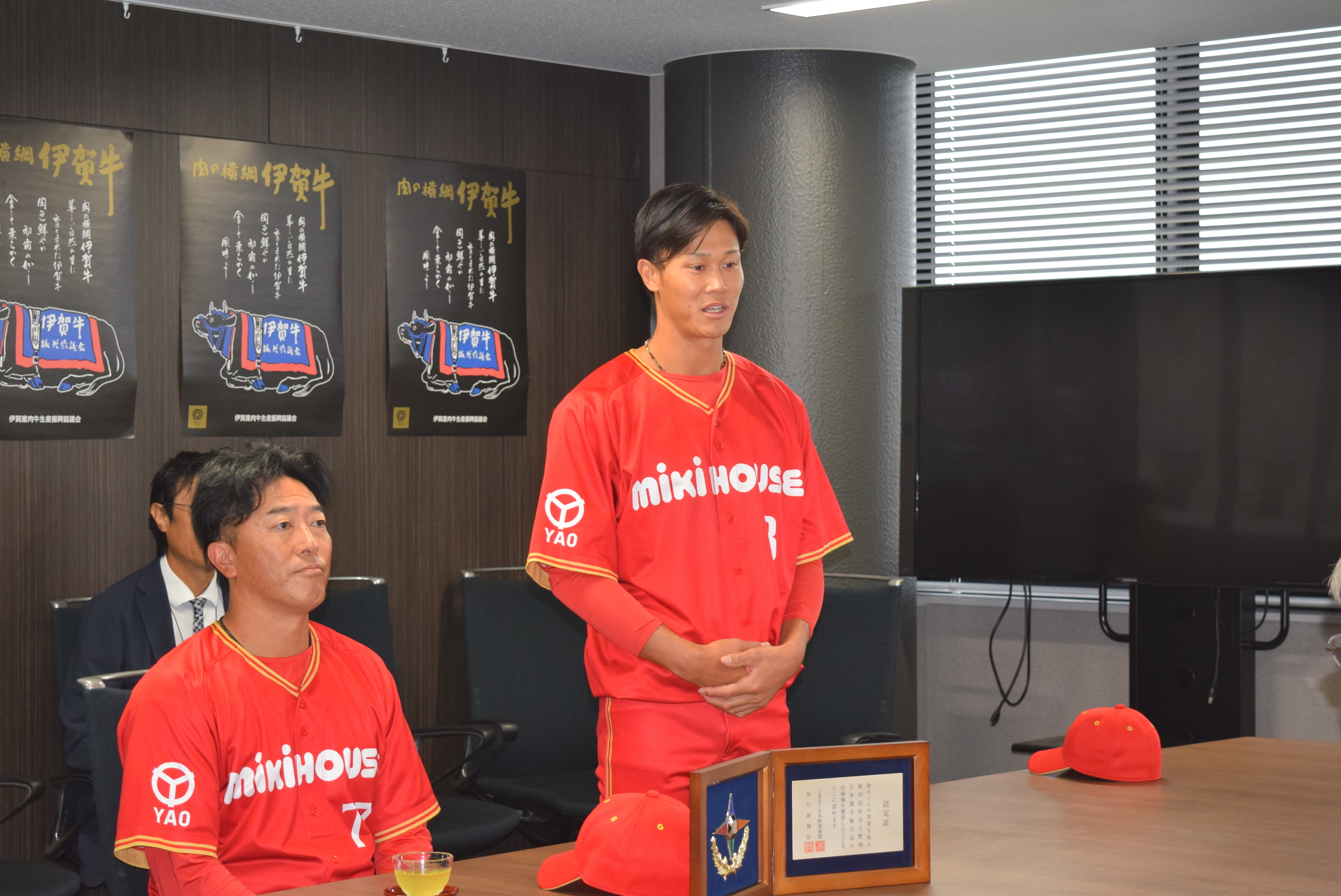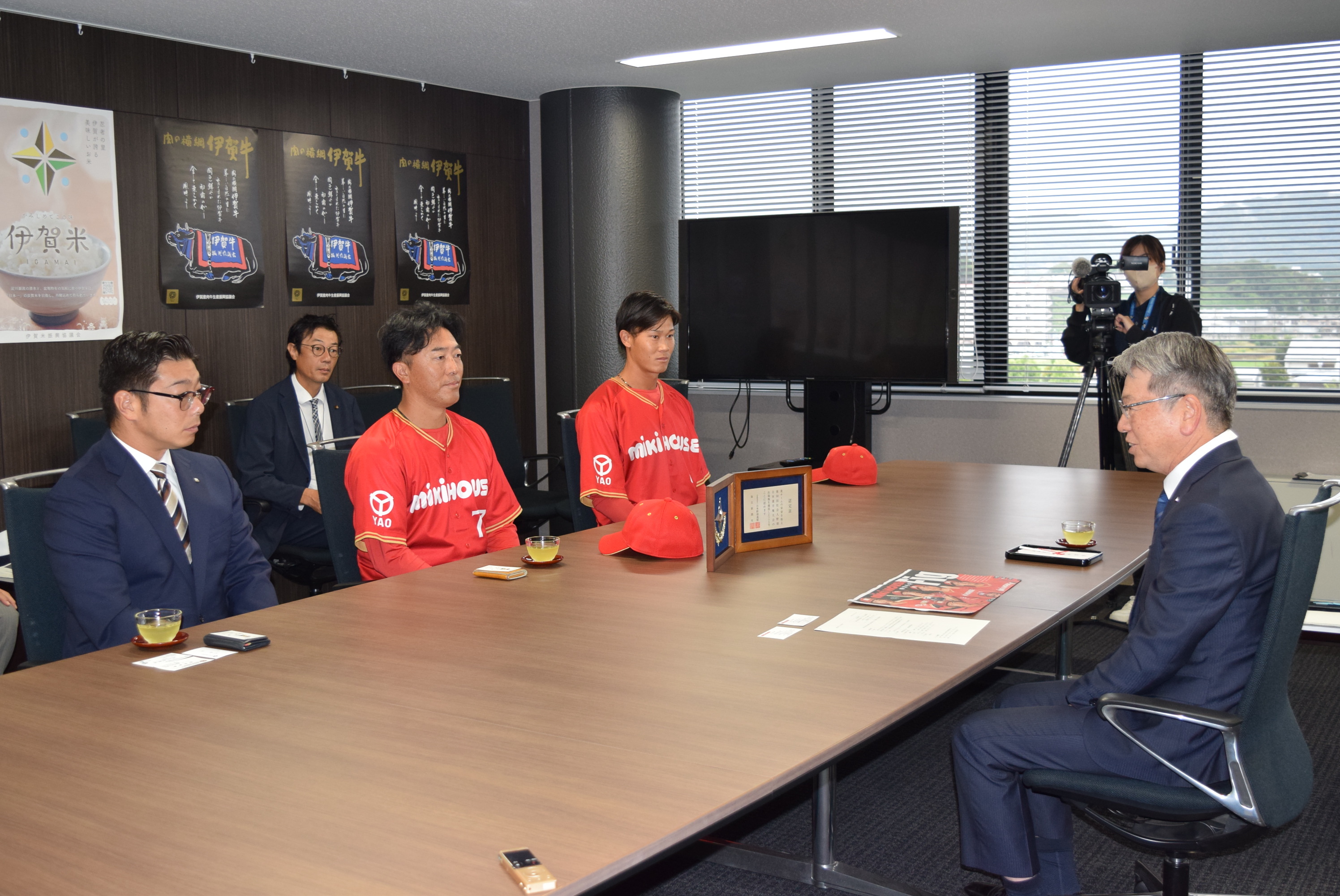宮崎副市長からは「全国大会へ行く社会人チームは少ないため、期待している。伊賀市の誇りであるため、市民一同盛り上がっていきたいと思う」と激励の言葉を送られました。