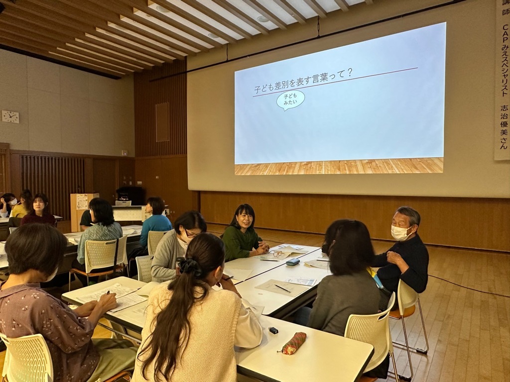 子どもの権利条約の4つの原則やこどもが持っている大切な3つの権利などを講義いただくほか、グループワークを通して、こどもの権利について身近に考えることができ、大変有意義な一日となりました。