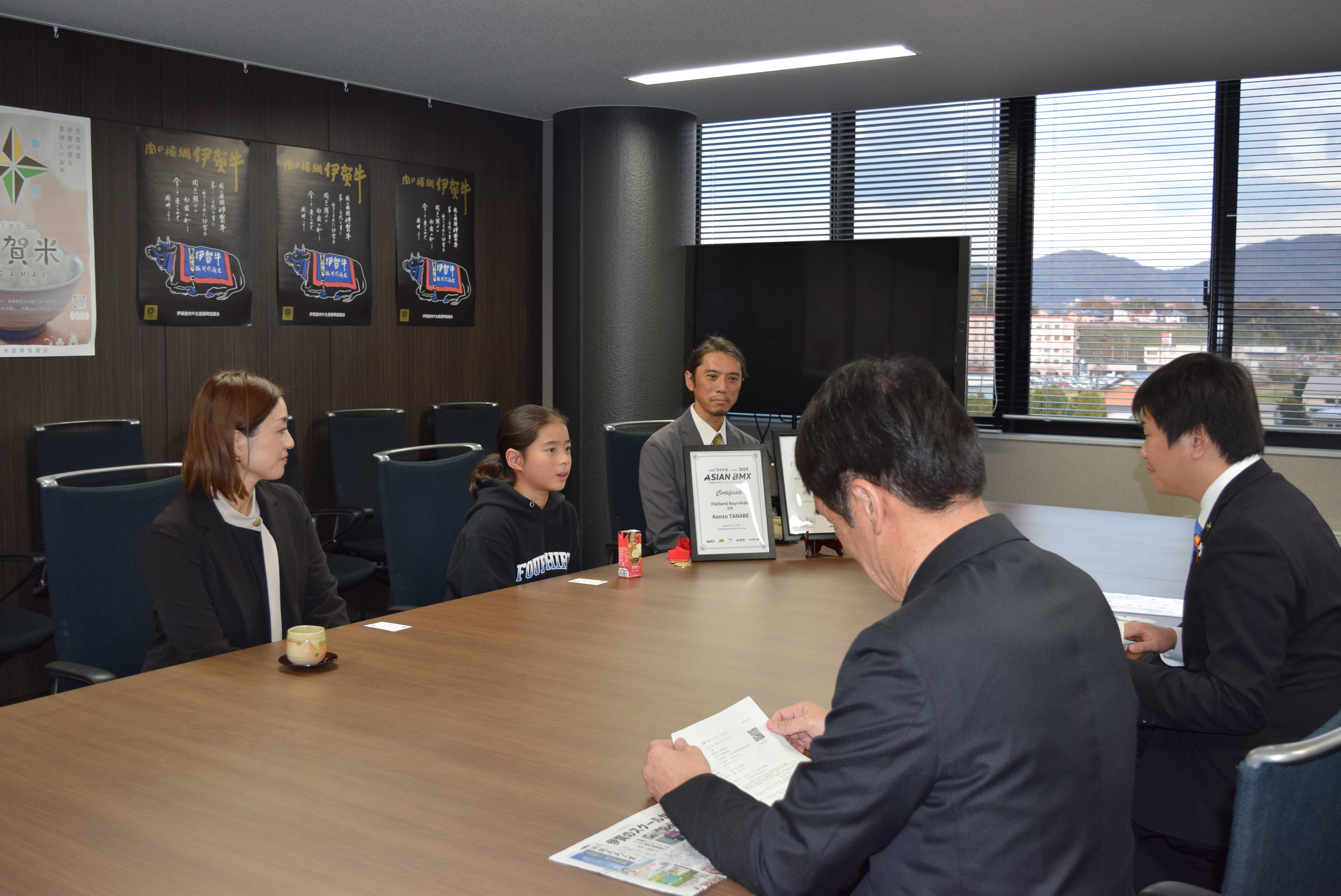 稲森市長からは「これまでの頑張りが大きな舞台で実ったと思う。大きな目標を持って、お父さんを越えられるように頑張ってほしい」とエールを送られました。