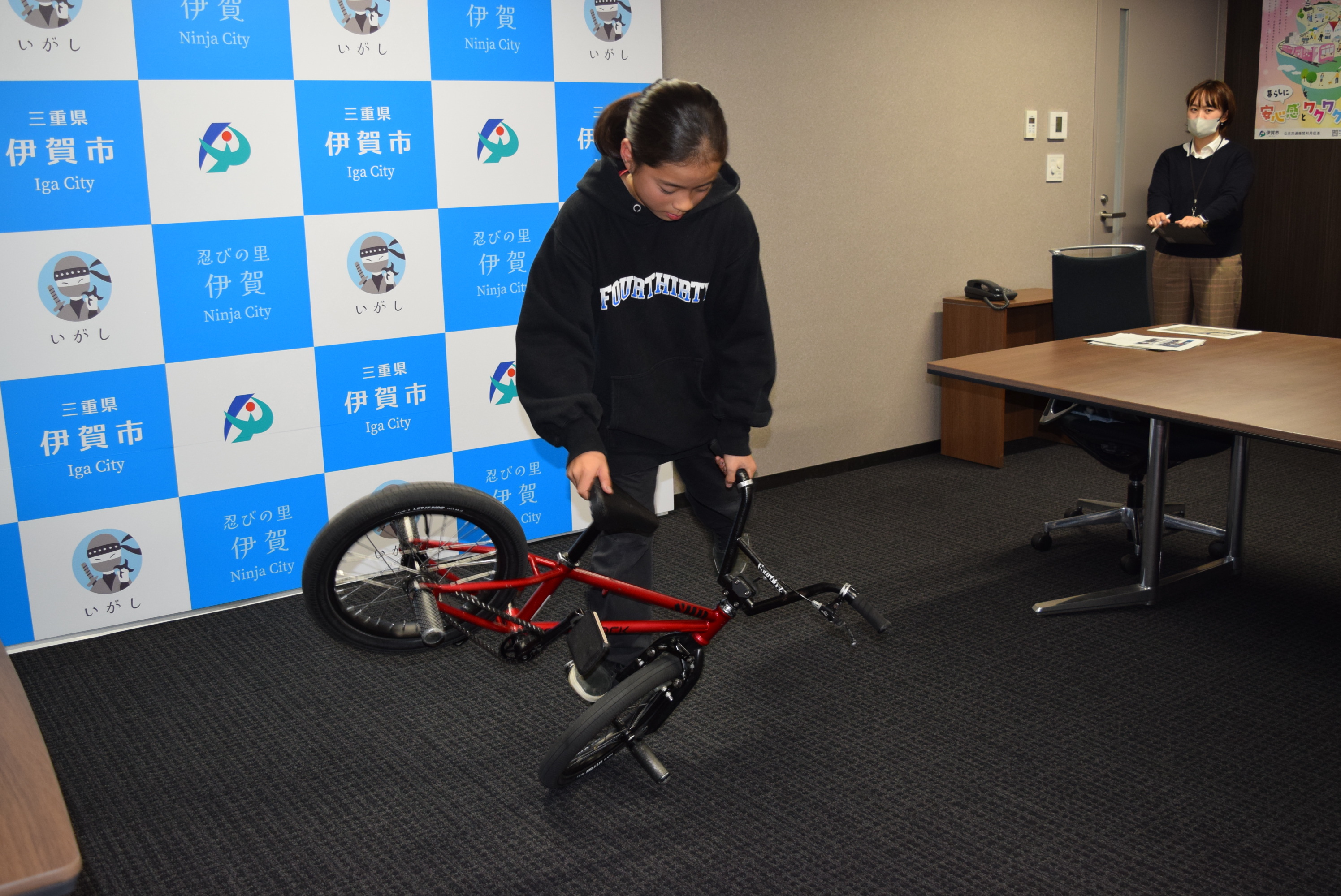 マイナビpresents2025アジアBMXフリースタイルジュニアチャレンジに出場された田邉 絢三選手が市役所を訪ねてくれました。