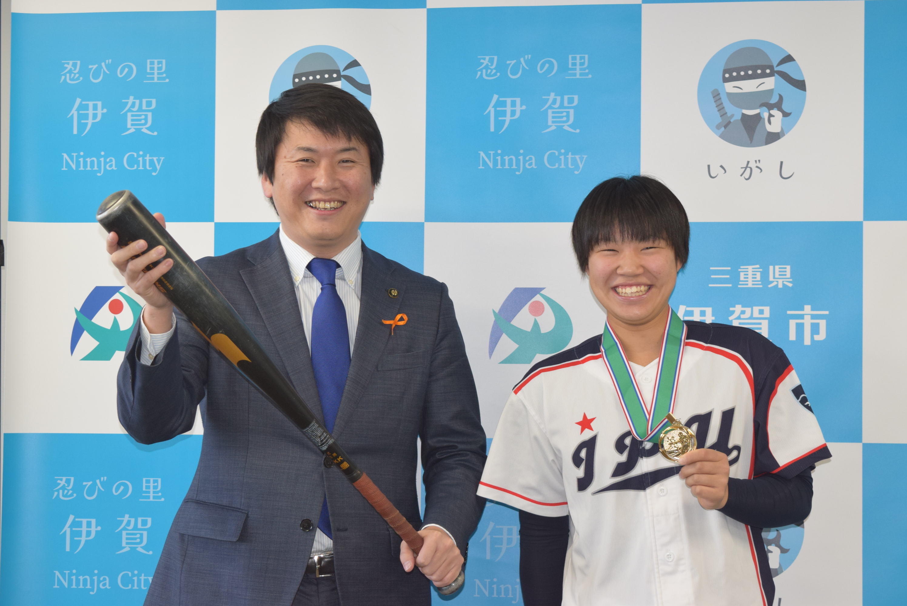 稲森市長からは「チームの中心的な役割を担われていること、嬉しく思う。伊賀市で野球をやっている子の希望や目標になってほしい」と激励の言葉を送られました。