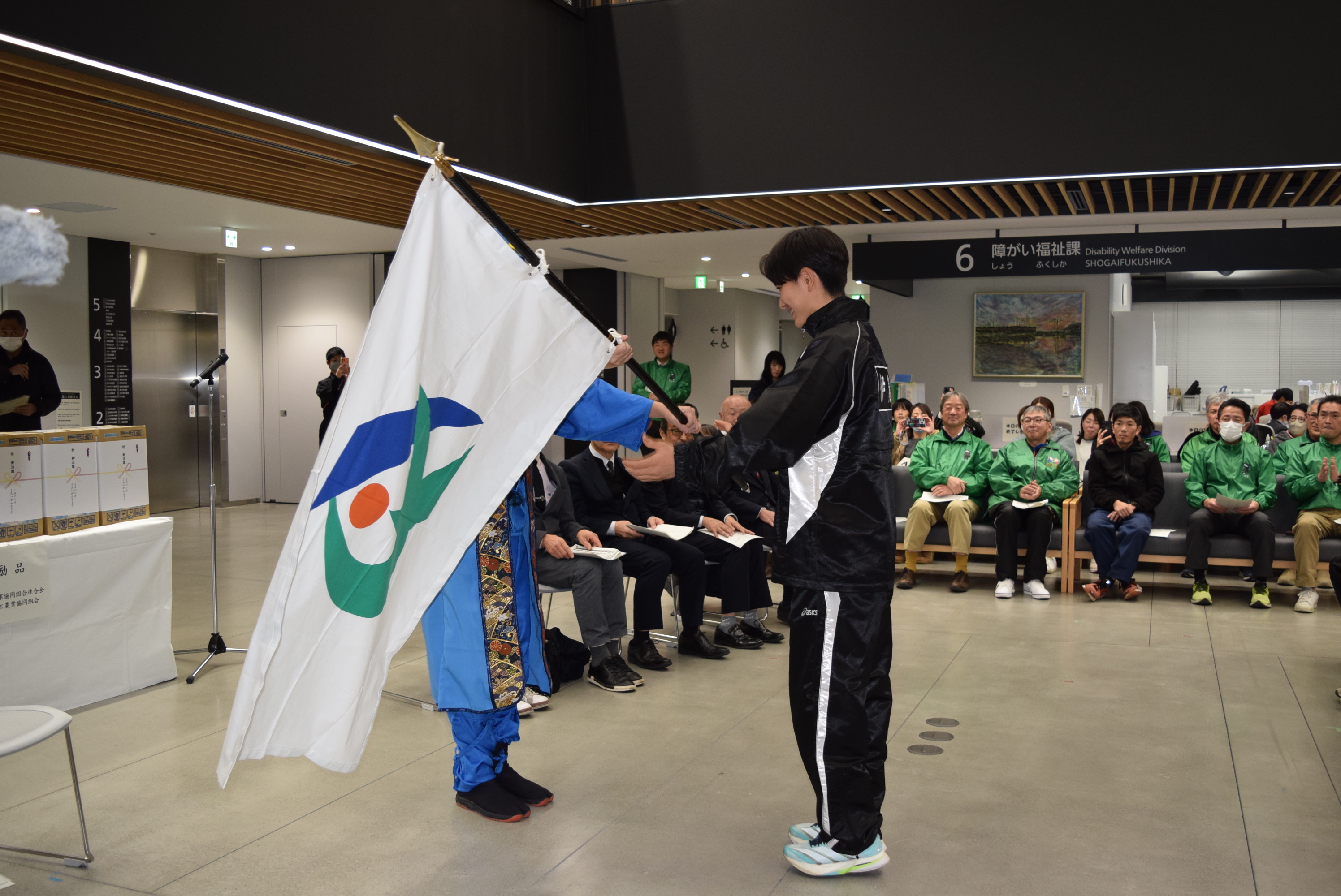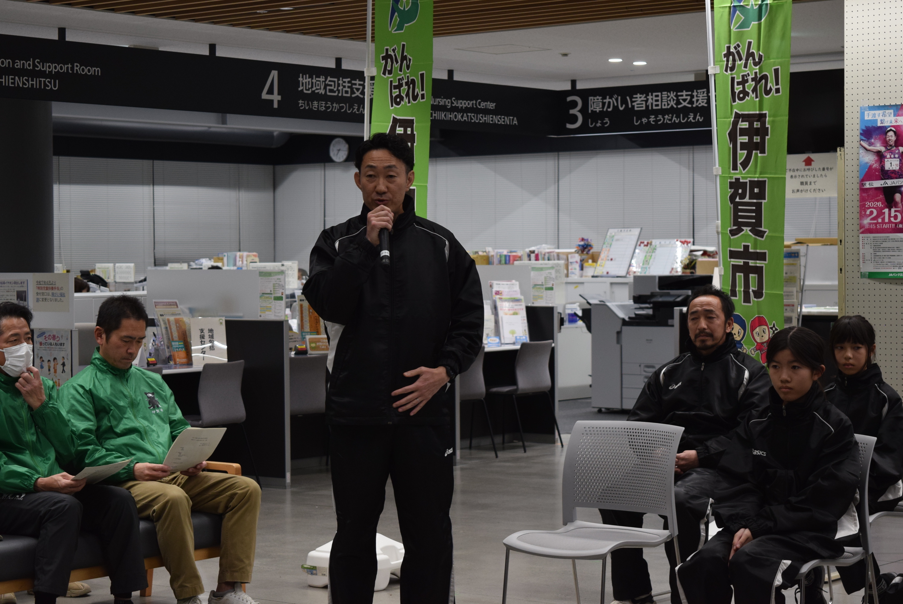 稲森市長からは「前回大会は9位という結果だったが、今大会は8位以上の入賞を目指して、伊賀米のように粘り強く、忍者のように颯爽と伊勢路を走り抜けてほしい」と激励の言葉を贈られました。