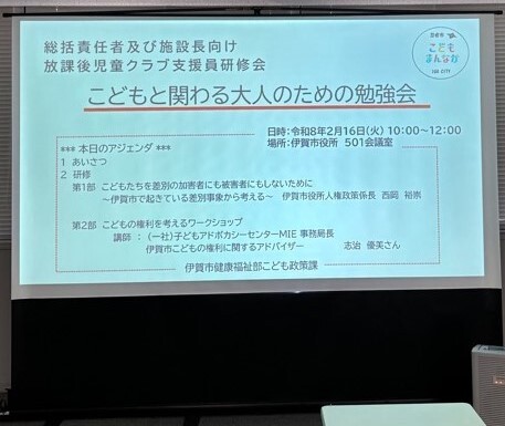 当日は、人権政策課による職員の講義をはじめ、一般社団法人 子どもアドボカシーセンターMIEの志治優美さんにお越しいただき、こどもの権利について考えました。様々な事例をもとにグループワークで話し合いを行うなど、大変有意義な日となりました。