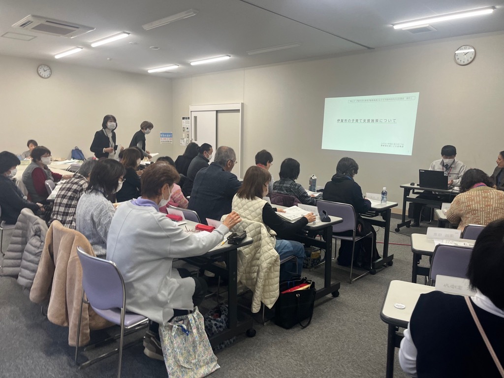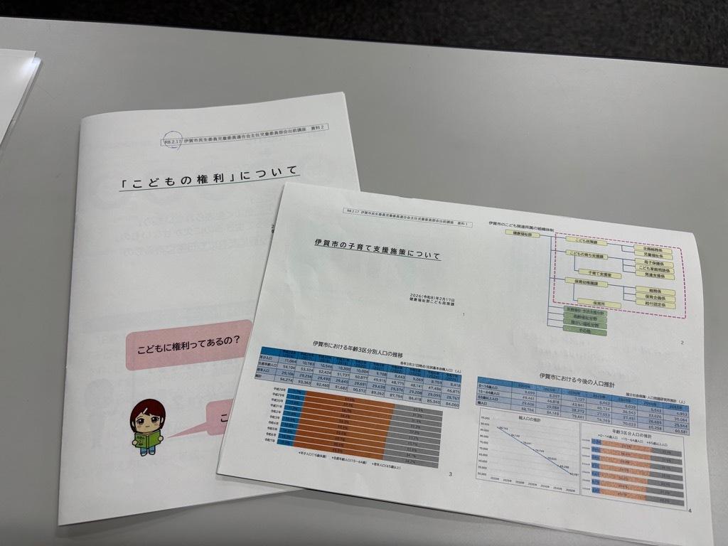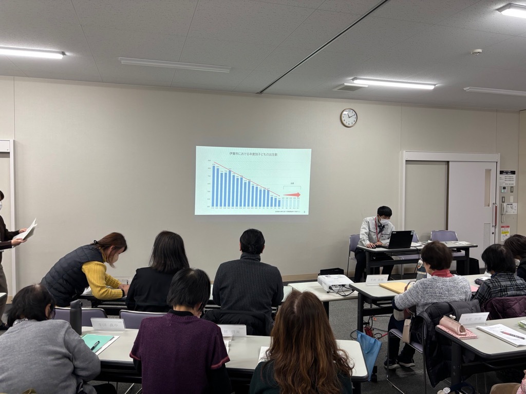 伊賀市の人口推移の特徴や、市で取り組んでいる子育て支援施策をはじめ、こどもの権利について勉強しました。